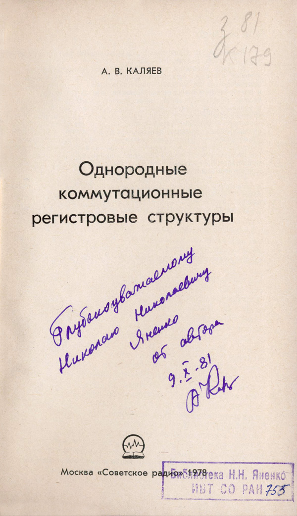 Каляев А.В. Однородные коммутационные регистровые структуры / А.В.Каляев. - М.: Сов. радио, 1978. - 336 с.