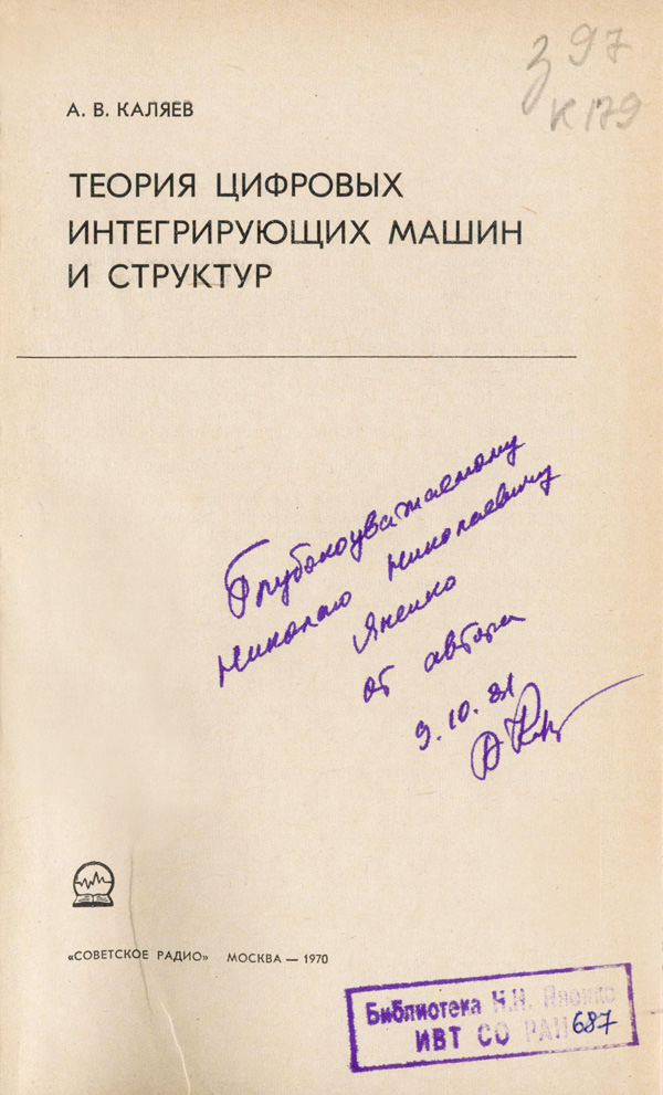 Каляев А.В. Теория цифровых интегрирующих машин и структур / А.В.Каляев. - М.: Советское радио, 1970. - 472 с.