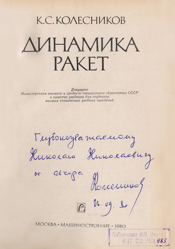 Колесников К.С. Динамика ракет / К.С.Колесников. - М.: Машиностроение, 1980. - 376 с.