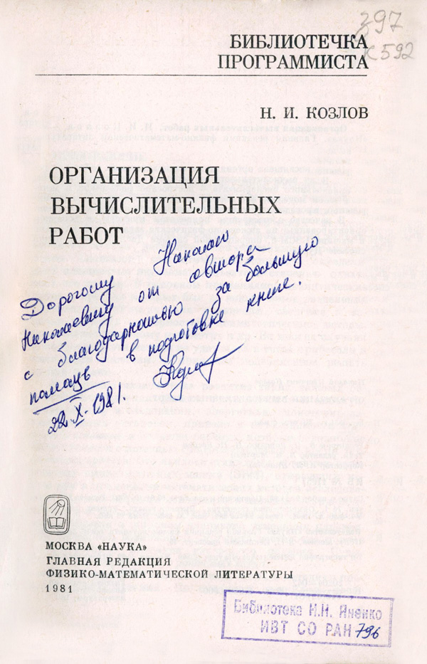 Козлов Н.И. Организация вычислительных работ / Н.И.Козлов. - М.: Наука, 1981. - 240 с. - (Б-чка программиста).