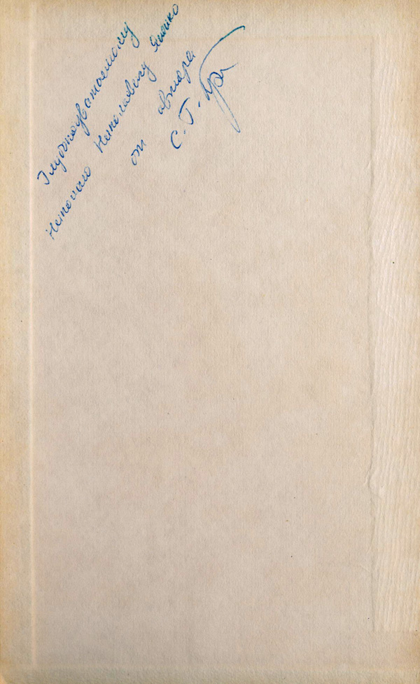 Автограф: Глубокоуважаемому Николаю Николаевичу Яненко на память от автора. 29.9.62.