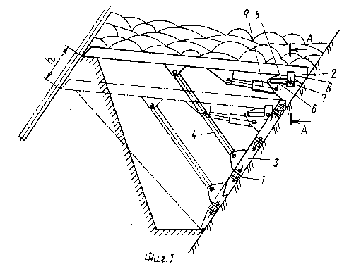 (57) Использование: секция крепи относится к горному делу, а именно к передвижным крепям и может найти применение при разработке мощных крутых угольных пластов. Секция крепи включает щитовое перекрытие (2), соединенное через опорные стойки (4) с передней частью лыж (3) и через гидроцилиндры (9) с задней частью лыж (3), выполненной с объемной сегментной опорой (5). Щитовое перекрытие (2) и объемная сегментная опора (5) снабжены двухсторонней удерживающей связью, содержащей паз (6), выполненный в объемной сегментной опоре (5), в которой помещен палец (7), соединенный со щитовым перекрытием (2). 3 ил.